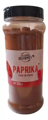 La Paprika o Pimentón Molido Estado Gourmet es un condimento natural elaborado a partir de pimientos seleccionados y cuidadosamente molidos para conservar su color intenso, aroma y sabor característico. Es ideal para realzar el sabor y la apariencia de una gran variedad de platos, aportando un toque ligeramente dulce y ahumado a las preparaciones.