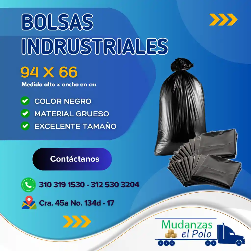 * Las bolsas industriales son ideales para mudanzas, trasteos o acarreos que requieren una solución fácil y rápida para empacar ropa, tendidos, zapatos y más. * Resistencia: Las bolsas industriales están hechas de materiales resistentes a golpes, impactos y situaciones químicas y térmicas. * Paquete de bolsas por 10 unidades. * Tamaño 94 de Alto x 66 de Ancho * Calidad Garantizada Contáctanos: 310 319 1530 - Ubicación: Cr. 45a No. 134d - 17 Bogotá D.C