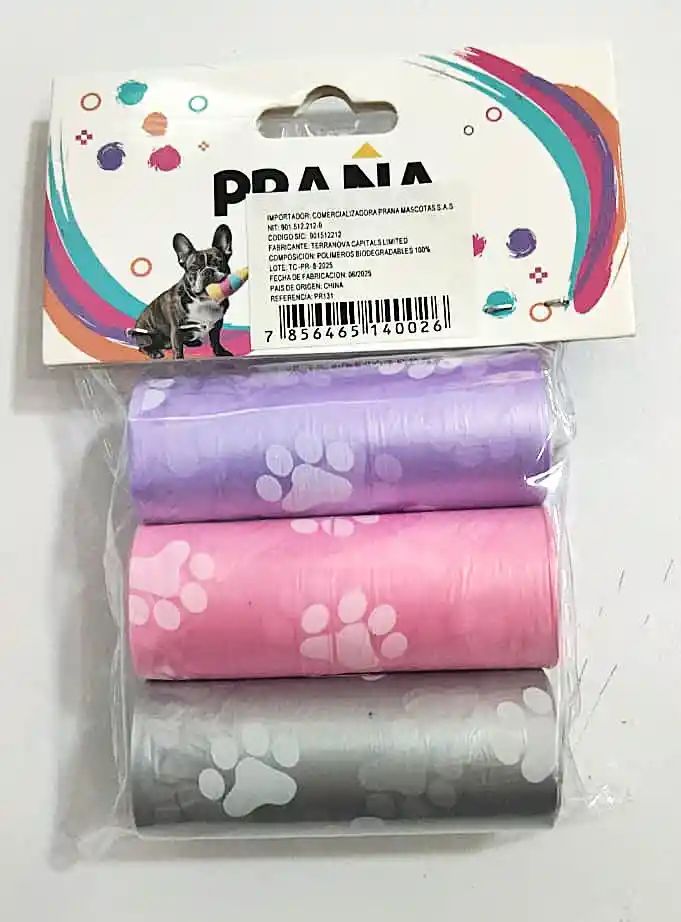 Bolsas plasticas para recoger desechos de las mascotas, colores surtidos