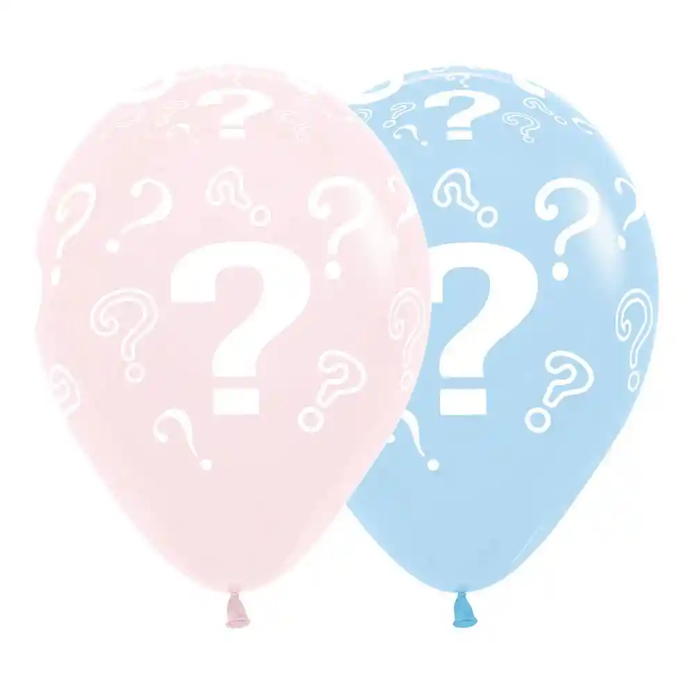 Paquete de globos R12 x 12 und Motivo interrogantes revelacion de sexo surtidos Globos 100% látex biodegradable Tamaño R12 (28 a 30 cm Ø) Marca Sempertex