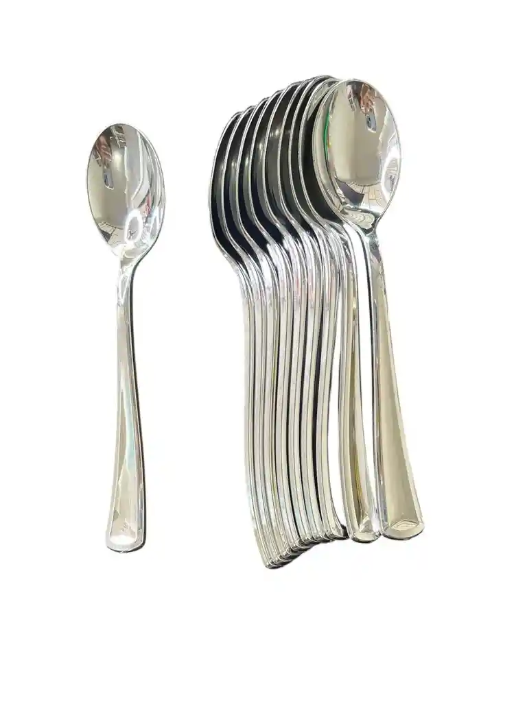 Paquete De CUCHARAS PlasticoAs Color Plateado Cubiertos Plasticos Por 10 Unidades
