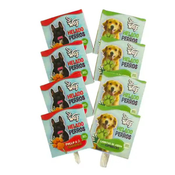 SABORES SUJETOS A DISPONIBILIDAD Sr WAF es un helado saludable, especialmente para mascotas hecho a base de ingredientes naturales que aportan vitaminas, colágeno para la salud y buena alimentación de las mascotas. *Palito de Carnaza *Sin conservantes *Sin Químicos *Empaque elaborado 100% a base de fibra de caña de azúcar