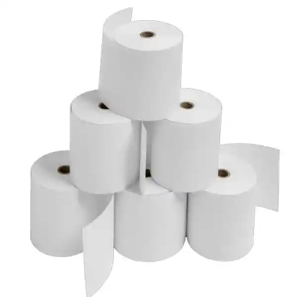 Paquetes de Rollos térmicos x6 Unidades 80 mm x 60 mts DI 17.5 Peso: 230 gms Materia prima: Papel térmico de 48 gramos importado Bujes de cartón 17.5 x 80