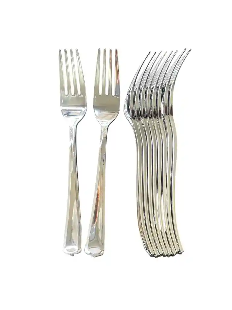 Paquete De Tenedores Plasticos Color PLATEADO Cubiertos Plasticos Por 10 Unidades