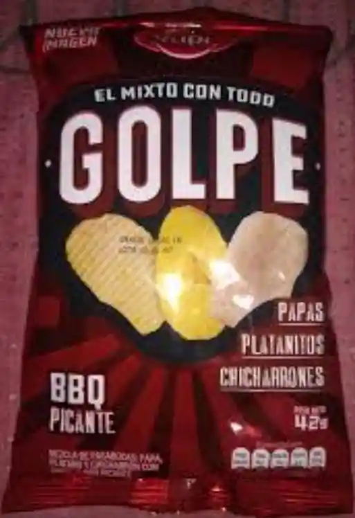 Paquete de Papas Mix BBQ marca Golpe de Todo Peso Neto 45 gramos