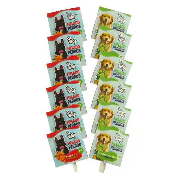 Sr WAF es un helado saludable, especialmente para mascotas hecho a base de ingredientes naturales que aportan vitaminas, colágeno para la salud y buena alimentación de las mascotas. *Palito de Carnaza *Sin conservantes *Sin Químicos *Empaque elaborado 100% a base de fibra de caña de azúcar