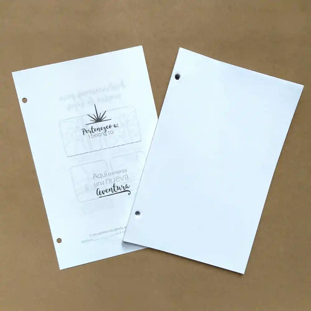 Cambio de hojas para las libretas media carta. Papel bond extra blanco 90 gr. Completamente blancas. Incluye hoja presentación/ instrucciones cambio de hojas.