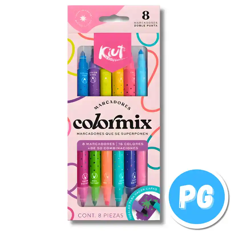 Paquete Marcador Kiut Color Mix x8 Unds Doblepunta