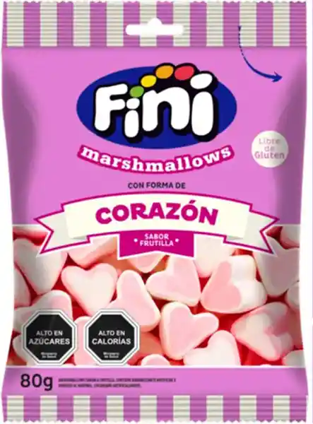 Marca: Fini Línea: Dulces Tipo de golosina: masmelo Sabor: Fresa y crema Peso de la unidad: 80 g Es libre de azúcar: No