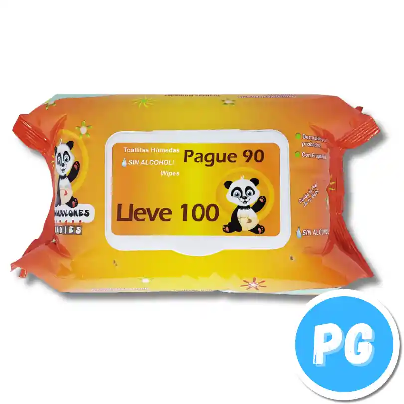 Paquete Pañitos Humedos Grandulones Panda x100 Unds