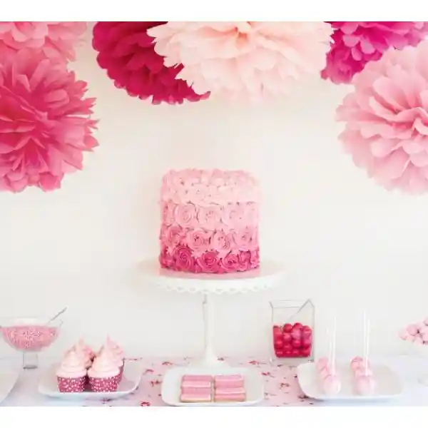 Paquete de pompones en papel seda x 3 und Combinado en color: Fucsia, blanco y rosado. (Se envían sin armar)