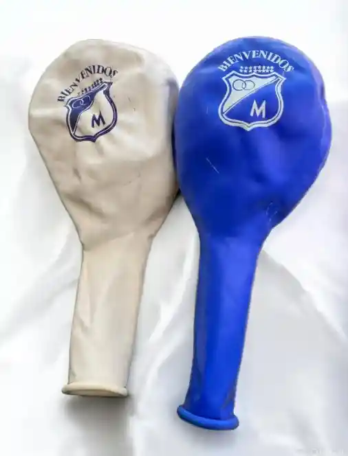Paquete Por 20 Unidades De Globos Bombas R-12 Motivo Equipo Millonarios Colores Azul Y Blanco