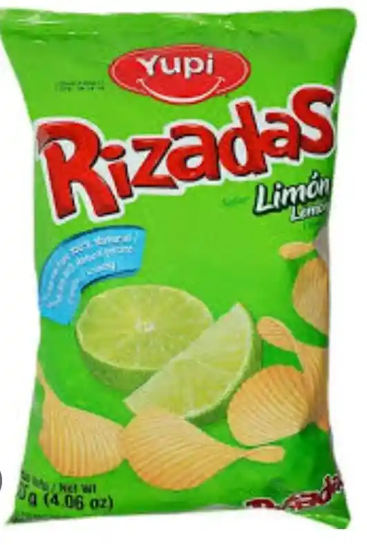 Paquete de papas Rizadas Peso Neto 105g, estas se encuentra en presentación sabor Limón.