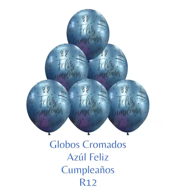 Paquete X12 Globos Azúl Cromado R12 Hermosos Globos Coloridos para decorar tus espacios motivo FELIZ CUMPLEAÑOS. El paquete viene en Color verdaderamente vivo, con una forma increíblemente única. Tamaño de Inflado: 30cm Tener en Cuenta: •Los Globos Vienen desinflados