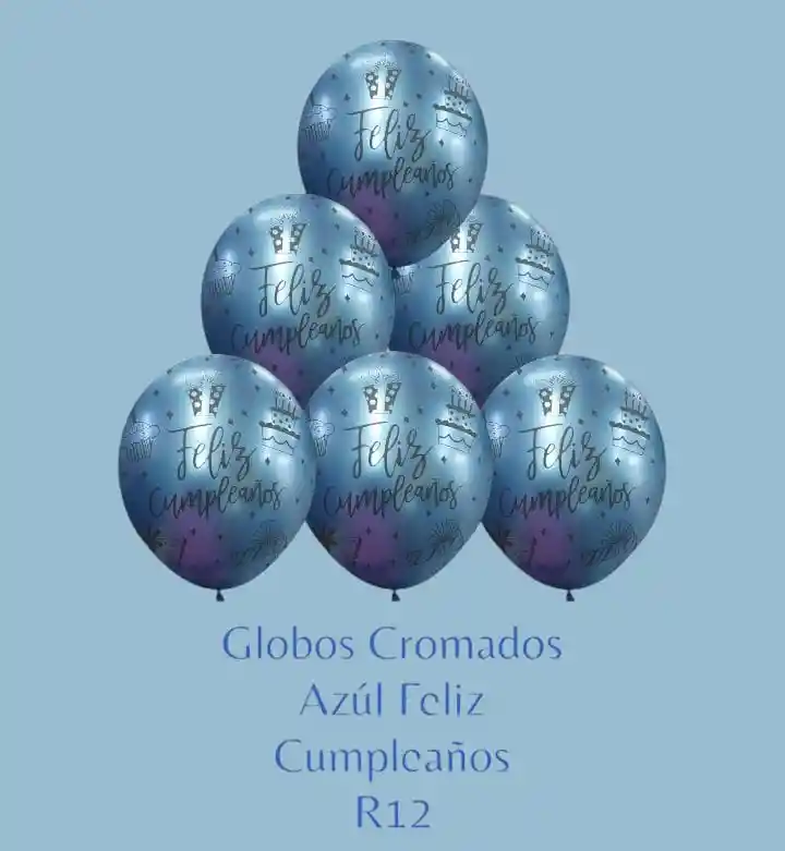 Paquete X12 Globos Azúl Cromado R12 Hermosos Globos Coloridos para decorar tus espacios motivo FELIZ CUMPLEAÑOS. El paquete viene en Color verdaderamente vivo, con una forma increíblemente única. Tamaño de Inflado: 30cm Tener en Cuenta: •Los Globos Vienen desinflados
