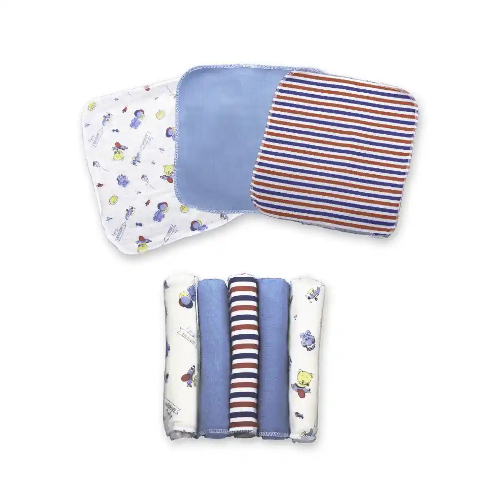 Para Landi Baby es muy importante la comodidad de tu bebe y tu tranquilidad es por eso que en nuestra colección hemos lanzado este funcional Set de Pañuelitos Multiusos, para que no pases ningún momento de apuro y estar siempre listo, nuestro set consta de (5) franelitas faciales cada una con medidas de 20cm x 20cm, antialérgicas (2) unicolor (1) rayitas (2) con estampado. Instrucciones de lavado: Lavar las franelas con agua fría ya sea a mano o en lavadora No usar blanqueador Características principales: - (5) Pañuelitos multiusos - 100% Antialérgicos - Suaves fresco - Fáciles de lavar - Medidas: 20x20 cm - Empacado en estuche - Hermoso diseño