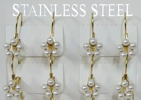Aretes de acero con perlas. Se vende el par.