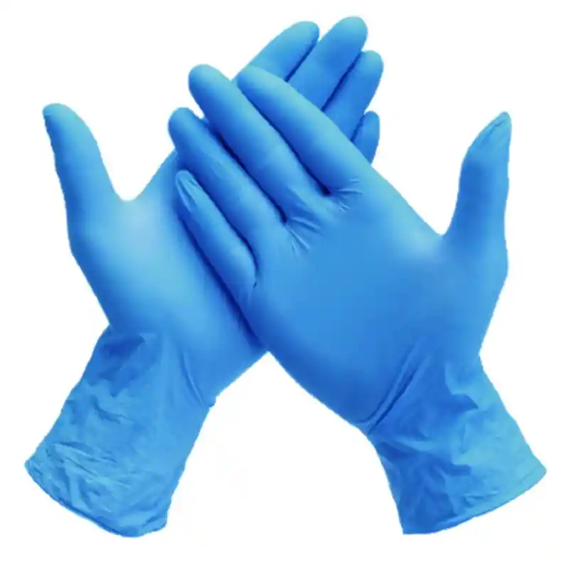 Par de guantes de nitrilo en color azul, diseñados para enfermería y uso profesional. Libres de látex, resistentes y flexibles, brindan alta protección y comodidad. Ideales para el sector médico, manipulación de alimentos y trabajos que requieren higiene y seguridad.