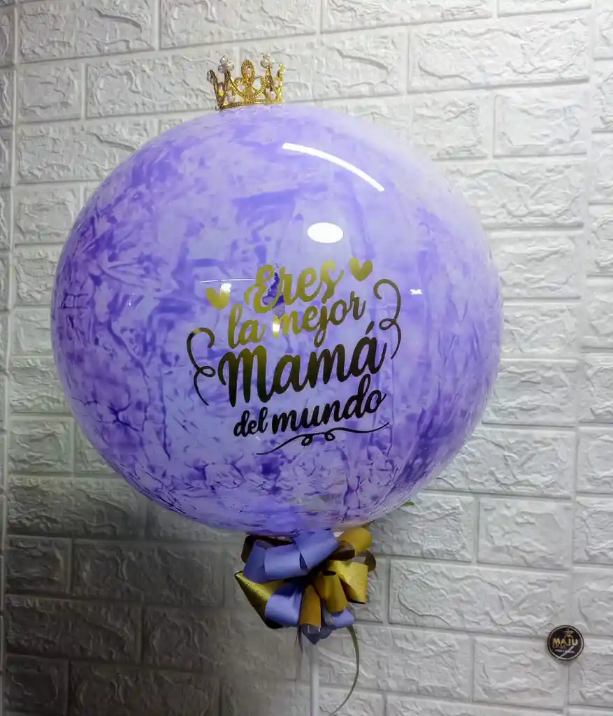 hermoso globo burbuja pintado con mensaje y corona de princesa
