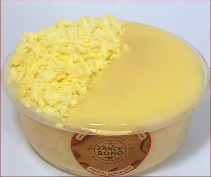 Exquisito y cremoso arroz de leche de la abuela acompañado de queso fresco y chips de chocolate