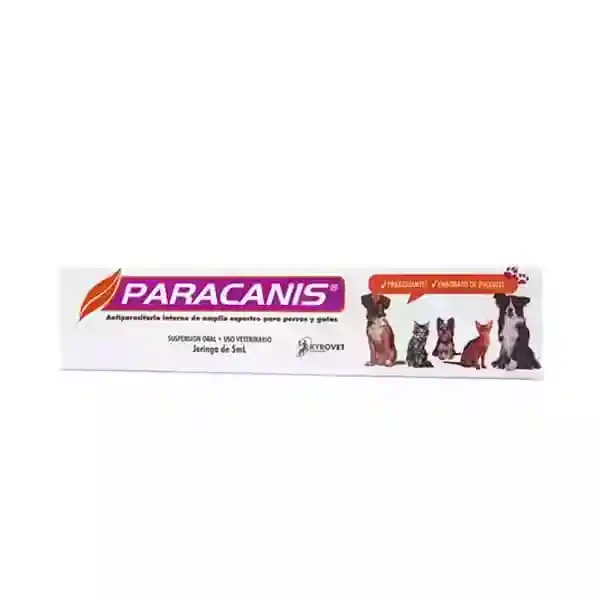 Paracanis 5 ml es un desparasitante de amplio espectro para perros y gatos. Diseñado para eliminar nemátodos y tenias, con formulaciones que pueden incluir la acción contra larvas y, en algunas versiones, contra larvas de Dirofilaria. Se administra por vía oral y se presenta en jeringas de 2 ml, 5 ml y 10 ml (presentación típica de 5 ml). Desparasita de amplio espectro Apoya la salud gastrointestinal Controla infestaciones por nemátodos y tenias (según versión) Puede incluir actividad contra larvas.