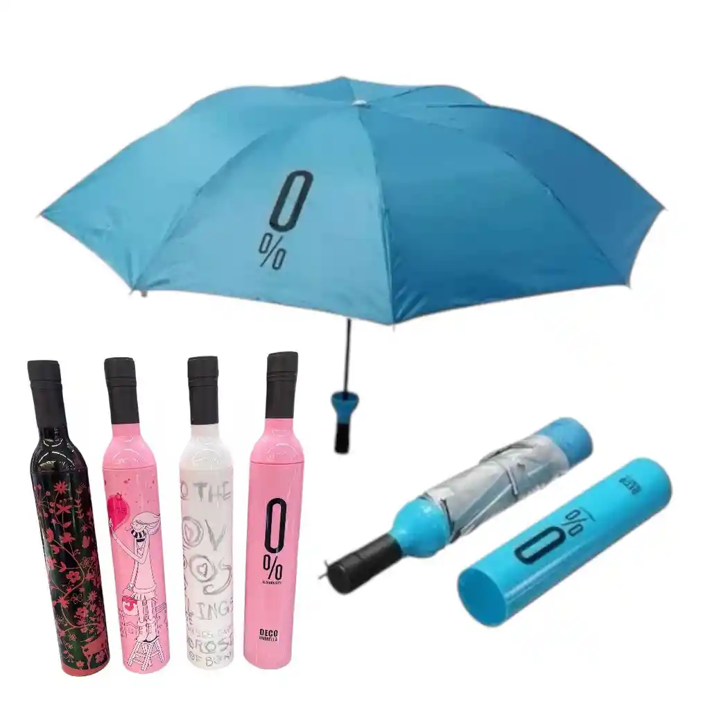 PARAGUAS CON FORMA DE BOTELLA - Mide 30 cm cerrado - Su práctico estuche hace que el paraguas nunca moje donde lo dejamos. - Hermoso y decorativo.