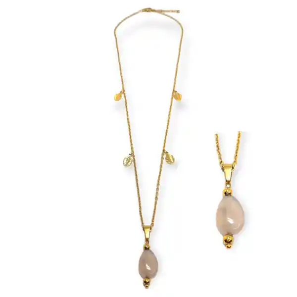Sin duda, un collar es el regalo ideal para combinar con todos los looks y son el detalle perfecto para lucir en una ocasión especial; son piezas que despiertan el lado más creativo de la mujer gracias al simbolismo que representan. Hermoso collar que integra en su diseño una piedra natural con mini hojas bañadas en oro brillante integradas en una cadena de acero dorado. - Largo de la cadena: 45 cm - Tamaño aproximado dije: 1.0 cm Joya ensamblada artesanalmente. - Garantía de 30 días en acabados bajo condiciones normales de uso - Al ser una pieza ensamblada de forma artesanal el producto entregado puede presentar diferencias de colores y acabados al expuesto en la fotografía