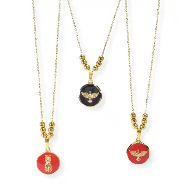 Los dijes son un excelente amuleto, y los accesorios son el pretexto perfecto para usarlos. La elección de accesorios con símbolos específicos es una gran manera de representar tus ideas o tu visión de la vida. Collar para mujer elaborada con cadenas y balines de acero dorado integrando un dije pintado a mano con baño dorado. - Largo de la cadena: 44 cm - Joya ensamblada artesanalmente. - Garantía de 30 días en acabados bajo condiciones normales de uso