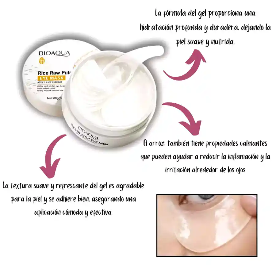 🌾✨ Parches Contorno de Ojos Bioaqua Rice ✨🌾 ¡Dale a tu mirada el cuidado que merece! 👀💖 ✅ Reduce ojeras y bolsas 🌙 ✅ Hidrata profundamente 💧 ✅ Repara y nutre la piel 🌿 ✅ Textura suave y refrescante ❄️ ✅ Con extracto de arroz 🍚 que calma e ilumina ✨ 🌟 Ideal para una mirada fresca, descansada y luminosa todos los días. 📦 Contenido: 60 piezas (30 pares) 👉 Modo de uso: Coloca los parches en el contorno de ojos por 15-20 min, retira y masajea el sérum restante 💆♀️ 🔥 ¡Despídete del cansancio y luce una mirada radiante con Bioaqua! 🌸