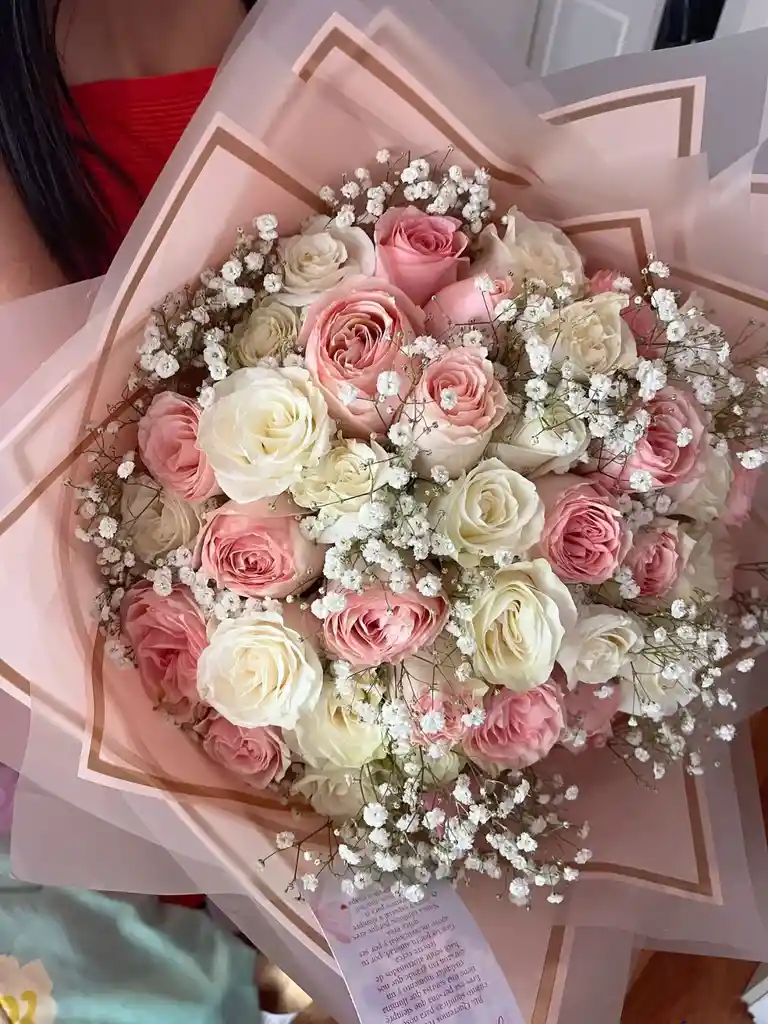 Ramo de rosas rosadas en papel coreano