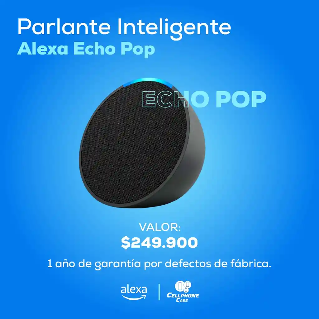 Convierte cualquier espacio en un lugar inteligente Agrega control por voz a cualquier toma de corriente con un enchufe inteligente o administra dispositivos de Casa Inteligente compatibles. Enciende una lámpara de bola de disco para que empiece la fiesta, atenúa las luces para la noche de películas o sube la temperatura del termostato al salir de casa. Alexa puede con todo Prepárate para empezar el día con información del clima y actualizaciones de noticias, acuérdate de todo con timers y recordatorios, mantente en contacto con llamadas a manos libres, sacia tu curiosidad con respuestas a tus preguntas y diviértete con chistes. Toca las notas adecuadas Pon ambiente en tu habitación con el parlante de proyección frontal del Echo Pop para un sonido definido. Solo pídele a Alexa que ponga tu contenido favorito de música, pódcast, audiolibros, o bien que te ayude a relajarte con meditación, sonidos para dormir, entre otras opciones. Características: • Potencia: 15 W RMS* • Altavoces incorporados • Asistente de voz • Conectividad inalámbrica • Color: negro carbón