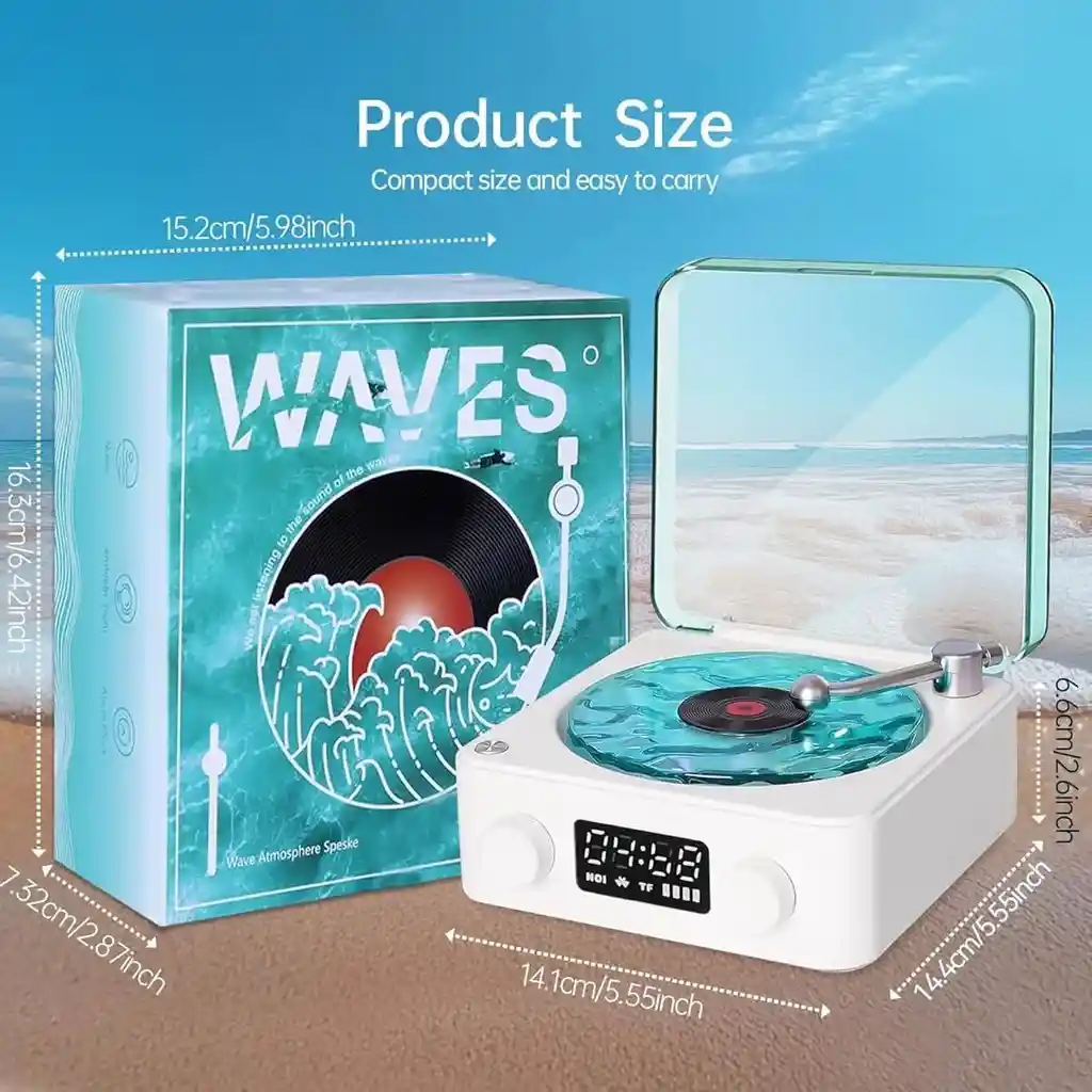 Sonido estéreo de 360°: conexión Bluetooth inalámbrica, reproductor de ondas que ofrece una experiencia de sonido envolvente que trae la tranquilidad al dormitorio, calma el cuerpo y la mente. El reproductor Waves: sumérgete en tranquilidad con el reproductor Waves, una experiencia visual única y cautivadora que combina perfectamente elementos naturales y tecnológicos. Con sonidos a naturaleza relajantes, este reproductor de música crea un ambiente y estado tranquilo con solo tocar un botón. Características: 1. Conexión Bluetooth. 2. Compatible con Android y iOs. 3. Pantalla digital. Aquí se muestra la hora, estado de la batería y la función. 4. Tiene entrada para memoria externa micro SD. 5. La batería es de 1500 mAh recargable. 6. Proyecta 3 tonos de luces. 7. Tiene 4 sonidos a naturaleza. 8. Autonomía de la batería es de 5 horas. 9. Tiene entrada tipo C, micro SD y Auxiliar.