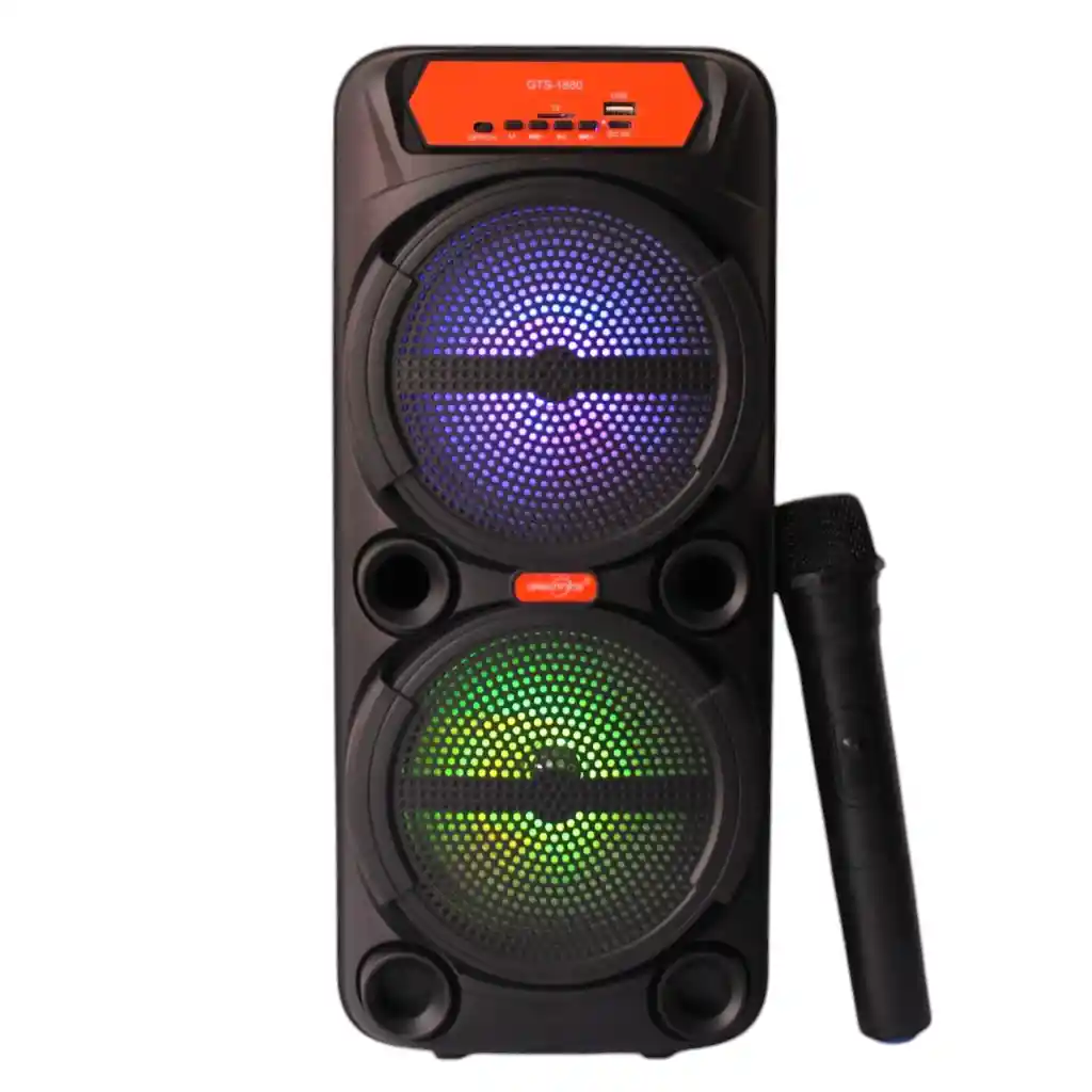 Lleva la música a otro nivel con este potente parlante portátil con doble altavoz y luces LED. Ideal para fiestas, reuniones, karaoke o eventos al aire libre. Ofrece sonido fuerte y claro, conexión Bluetooth estable y opciones de reproducción desde USB y tarjeta TF. Incluye micrófono para animar cualquier ambiente y batería recargable para llevarlo donde quieras sin preocuparte por cables. DETALLES 15W X 2 DC 5V Sonido Potente con Doble Bocina de Alto Rendimiento Iluminación LED Integrada en los Parlantes Incluye Micrófono Ideal para Karaoke y Eventos Conectividad Inalámbrica vía Bluetooth Puerto USB y Lector de Tarjeta TF para Reproducción Directa Batería Recargable para Uso Portátil Botones de Control de Volumen, Modo y Reproducción Entrada Auxiliar 3.5mm para Otros Dispositivos Diseño Compacto y Fácil de Transportar Dimensiones Aproximadas: Largo 15 cm, Ancho 18 cm, Alto 40 cm *IMPORTANTE* El color del producto puede variar, según la disponibilidad en el momento* **INFORMACION IMPORTANTE **El color de la foto es referencial para que puedas ver los atributos del producto y al mismo tiempo es la opción 1 nuestra de despacho. Pero dejamos la aclaración para que lo tengas presente por si te llegara en otro color. ** NOTA : La foto de este producto ha sido ambientada, por lo cual no incluye ningún adorno, ni accesorios, ni piezas adicionales ni ningún otro elemento que lo acompañan. Observaciones De Garantía: 1 Mes **** La garantía de este producto es exclusivamente por defectos de fábrica, no por daños ocasionados por mal uso o por desconocimiento de uso del cliente. La garantía se tramitará bajo las políticas, términos y condiciones establecidos por la empresa. ****