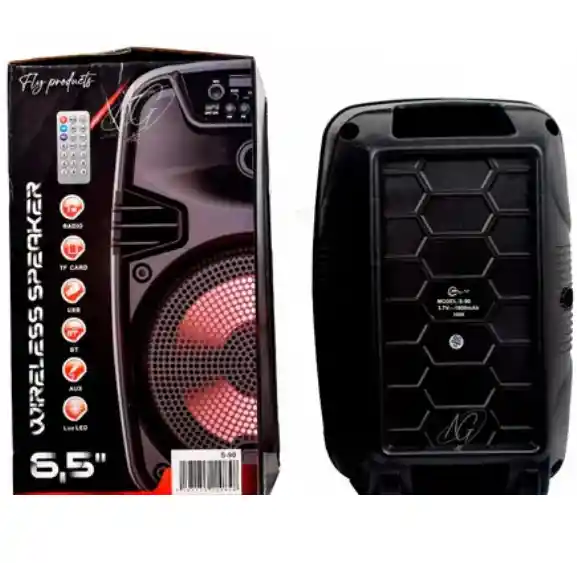 Versatilidad y diversión en un solo parlante El Fly S90 de 6.5” es el aliado perfecto para quienes buscan un altavoz multifunción que combine estilo, potencia y comodidad. Ya sea en casa o al aire libre, este equipo cumple con todo lo que necesitas para disfrutar tu música. Funciones principales: Altavoz inalámbrico con Bluetooth: Reproduce sin cables desde cualquier dispositivo compatible. Entradas múltiples: Incluye USB, tarjeta TF, y AUX para que tengas más opciones de reproducción. Radio FM digital: Acceso a emisoras locales sin necesidad de datos. Control remoto incluido: Para un manejo fácil y sin interrupciones. Iluminación LED: Efecto visual que transforma cualquier espacio en un ambiente festivo. Ideal para: Reuniones familiares Fiestas al aire libre Clases de baile o fitness Uso diario en el hogar Garantía válida por 30 días a partir de la compra.
