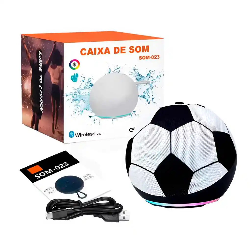 Este parlante portátil con un diseño único de balón de fútbol combina estilo deportivo y tecnología avanzada para ofrecer una experiencia de audio vibrante en cualquier lugar. Equipado con tecnología Bluetooth 5.1 y modo TWS, permite el emparejamiento de dos unidades para lograr un sonido estéreo ampliado y envolvente. Su estructura compacta de 9.8 cm incluye una base con iluminación LED RGB de colores, lo que lo convierte en el accesorio ideal para interiores y exteriores, garantizando un sonido intenso y vibrante en un formato fácil de transportar. FICHA TÉCNICA Modelo: SOM-023 Material: ABS + tela de recubrimiento Dimensiones: 9.8 cm x 9.8 cm Potencia de salida: 5W Especificación del parlante (Horn): 52 mm Conectividad inalámbrica: Bluetooth V5.1 (Jerry 5.1) Distancia de recepción inalámbrica: Menor o igual a 15 metros Funciones de reproducción: FM, BT, TWS, Tarjeta TF, USB Capacidad de la batería: 1200 mAh (según empaque técnico) / 800 mAh (según material promocional) Voltaje de carga: DC 5V Voltaje de trabajo: DC 3.7V Duración de reproducción: 2 a 5 horas Tiempo de carga: 2 a 3 horas POLÍTICAS DE GARANTÍA Nuestra garantía cubre defectos de fabricación por un periodo de 30 días calendario a partir de la entrega del producto. Para hacer efectiva la garantía, el artículo debe ser devuelto en su empaque original, con todos sus accesorios completos (cable USB y manual) y sin señales de mal uso, golpes, humedad o manipulación interna. No cubre daños ocasionados por sobrecargas eléctricas externas o el uso de cargadores no compatibles con el voltaje especificado. El proceso de revisión técnica determinará si aplica la reparación o el cambio del producto según sea el caso. Aviso legal La duración de la batería depende del uso que se le de al producto.
