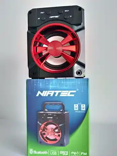 17 cm de alto 12 cm de ancho 9 cm de fondo Parlante Portable Bluetooth Reproductor MP3 Puerto para memoria USB Puerto para memoria Micro SD Entrada auxiliar estereo Batería recargable incluida Radio FM Parlante de 3¨ Agarradera superior Cable de carga incluido Cargar con el cargador de su celular