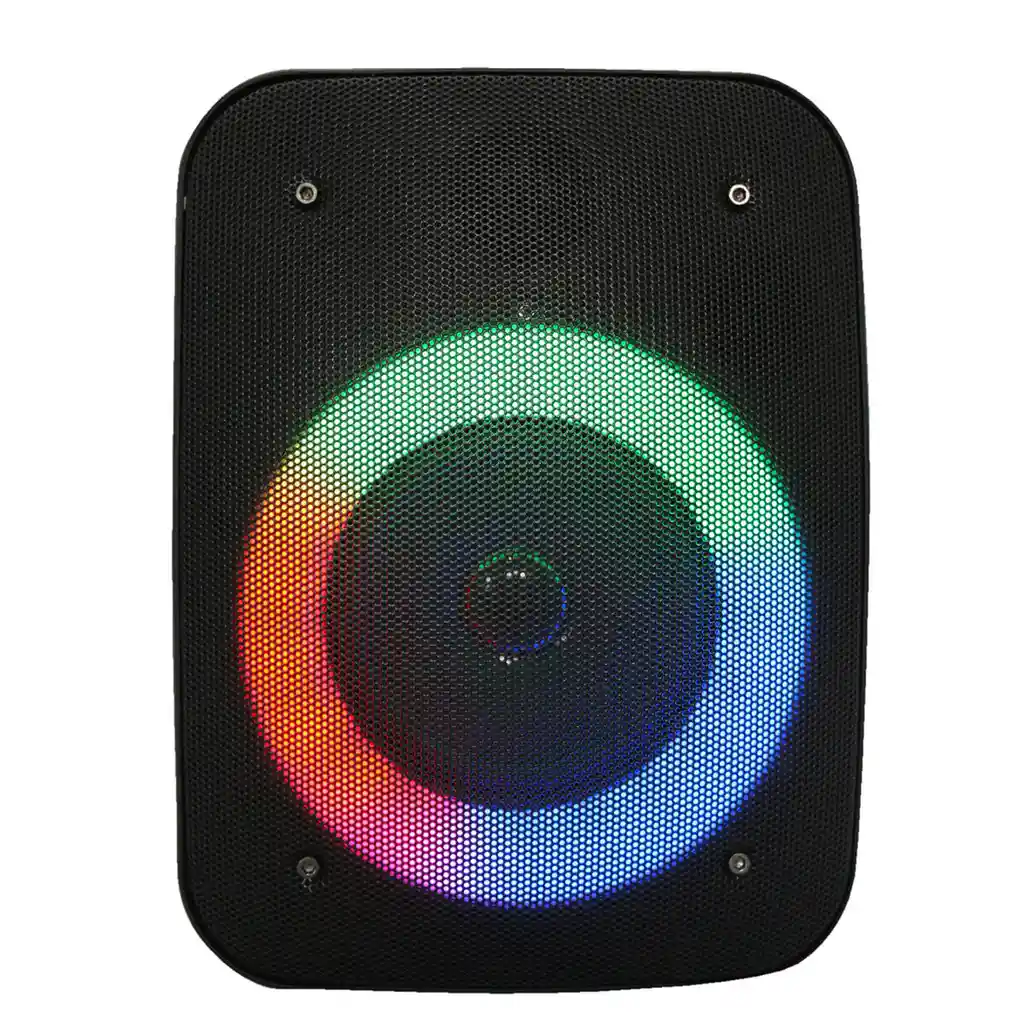 Espectacular oferta de sonido portátil, este hermoso parlante de sonido de alta fidelización, tiene la facilidad de reproducir por Bluetooth, USB, Micro SD Y FM Radio, con entrada Auxiliar, este hermoso parlante lo puedas transportar sin problemas, el parlante trae batería de Litio de alta duración para que puedas armar las fiestas donde quieras o para que puedas hacer KARAOKE o lo que se le pueda ocurrir en cualquier lugar Características destacadas Potente alto parlante con radio FM y reproductor MP3. Radio FM Trae luces tipo discoteca Reproduce USB y tarjeta TF Sonido potente y mejorado Bateria de Lithium de larga duración Entrada auxiliar Conexión bluetooth Maxima potencia: 10 WRMS Entrada DC: 5 V Medidas 23 cm de Alto x 17 cm de Ancho x 13 cm de Profundidad. Disponible en colores: Negro