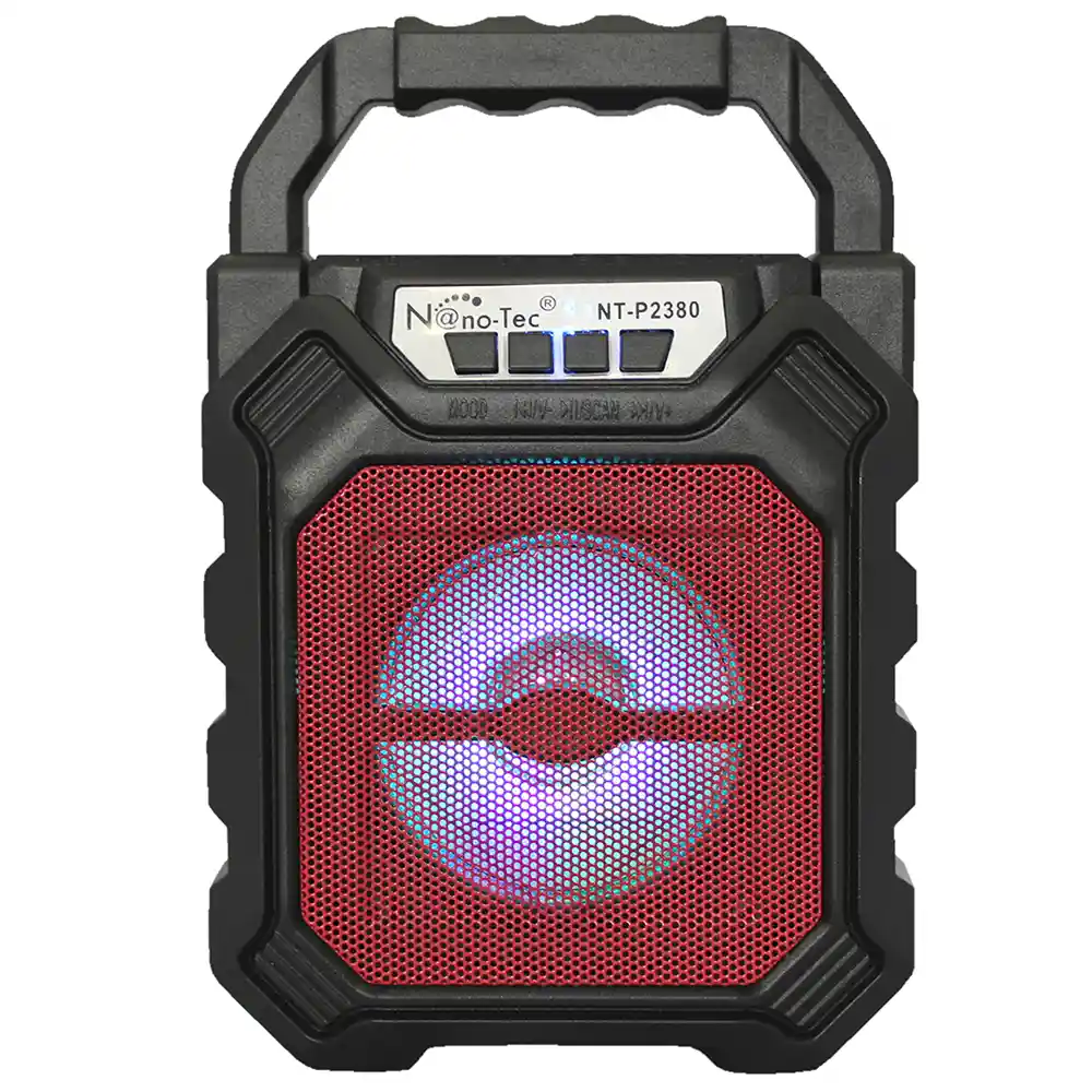 Espectacular oferta de sonido portátil, este hermoso parlante de sonido de alta fidelización, tiene la facilidad de reproducir por Bluetooth, USB, Micro SD Y FM Radio, con entrada Auxiliar, este hermoso parlante lo puedas transportar sin problemas, el parlante trae batería de Litio de alta duración para que puedas armar las fiestas donde quieras o para que puedas hacer KARAOKE o lo que se le pueda ocurrir en cualquier lugar. Características destacadas Potente alto parlante con radio FM y reproductor MP3. Radio FM Reproduce USB y tarjeta TF Sonido potente y mejorado Bateria de Lithium de larga duración Trae luces tipo discoteca Entrada auxiliar Conexión bluetooth Maxima potencia: 10 WRMS Entrada DC: 5 V Medidas 18 cm de Alto x 12 cm de Ancho x 7 cm de Profundidad. Disponible en colores: Rojo - Negro - Azul