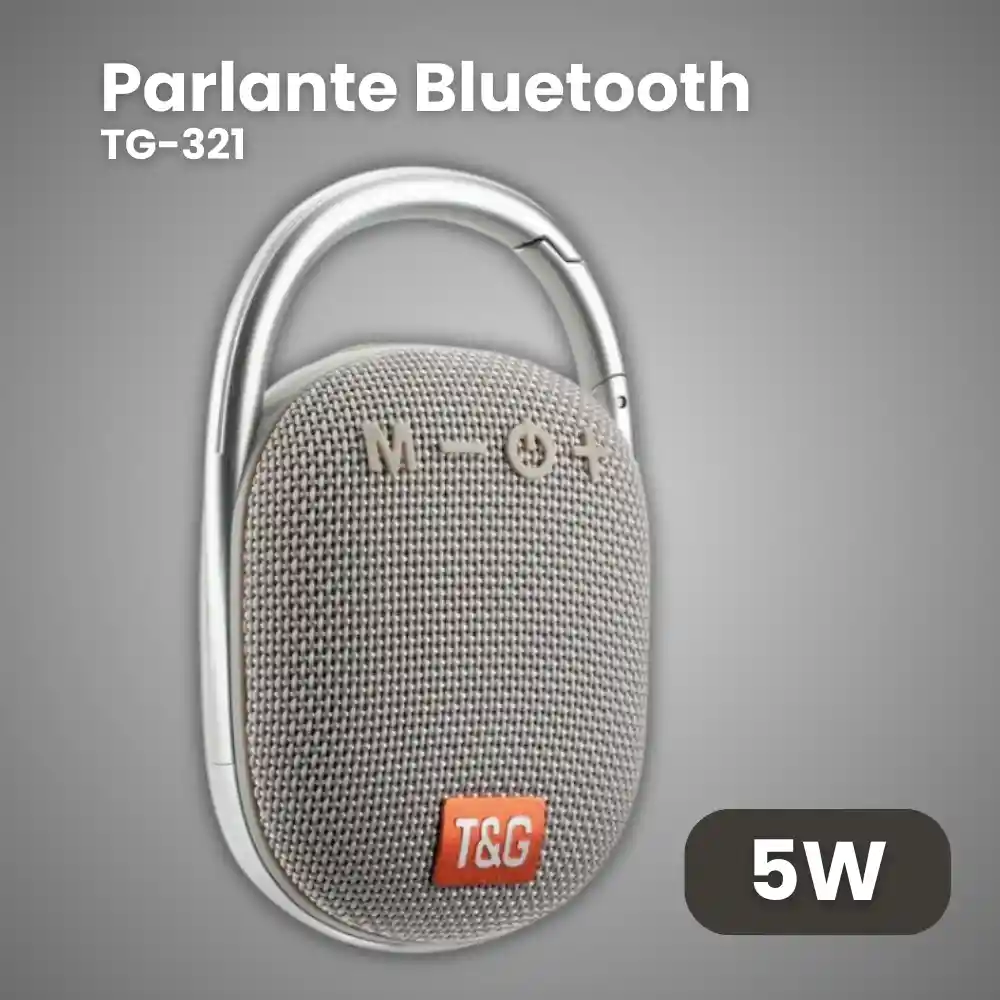 Parlante Bluetooth portátil T&G modelo TG-321, con potencia de salida de 5W y diseño compacto tipo colgante con aro metálico estilo mosquetón. Permite reproducción inalámbrica estable y también desde USB y tarjeta TF (MicroSD). Cuenta con batería recargable, controles superiores y función TWS para emparejar dos parlantes iguales. ⚙️ Características principales ✦ Parlante Bluetooth inalámbrico ✦ Potencia de salida: 5W ✦ Diseño ultracompacto con aro metálico tipo mosquetón ✦ Cubierta frontal en tejido textil ✦ Controles superiores integrados: - M (modo) - Subir volumen / pista anterior - Encendido / play / pausa - Bajar volumen / pista siguiente ✦ Reproducción de audio desde: - Bluetooth - USB - Tarjeta TF (MicroSD) ✦ Función TWS (empareja dos TG-321) ✦ Función manos libres para llamadas ✦ Puerto de carga USB-C ✦ Indicador LED de estado 📦 Incluye ✦ 1 parlante Bluetooth T&G TG-321 ✦ 1 cable de carga USB ✦ 1 manual de usuario 📐 Especificaciones técnicas ✦ Marca: T&G ✦ Modelo: TG-321 ✦ Potencia: 5W ✦ Driver: Ø 45 mm × 1 ✦ Respuesta de frecuencia: 120 Hz – 20 kHz ✦ Relación señal / ruido: ≥ 90 dB ✦ Alcance Bluetooth: Hasta 10 metros ✦ Batería: 500 mAh / 3.7 V ✦ Autonomía: Aproximadamente 2 horas (volumen medio) ✦ Carga: 5 V / 500 mA ✦ Puertos: USB, tarjeta TF, USB-C ✦ Protocolos Bluetooth: L2CAP / A2DP / AVCTP / HSP / HFP ✦ Dimensiones: 8.5 × 5 × 13 cm ✦ Origen: Made in China ✦ Certificaciones: CE, RoHS ⚠️ La duración de la batería puede variar según volumen y tipo de uso. 🎯 Ideal para ✦ Uso personal diario ✦ Llevar en mochila, bolso o colgar ✦ Escritorio, habitación o espacios pequeños ✦ Viajes cortos ✦ Personas que buscan portabilidad y simplicidad ✦ Regalo práctico y funcional
