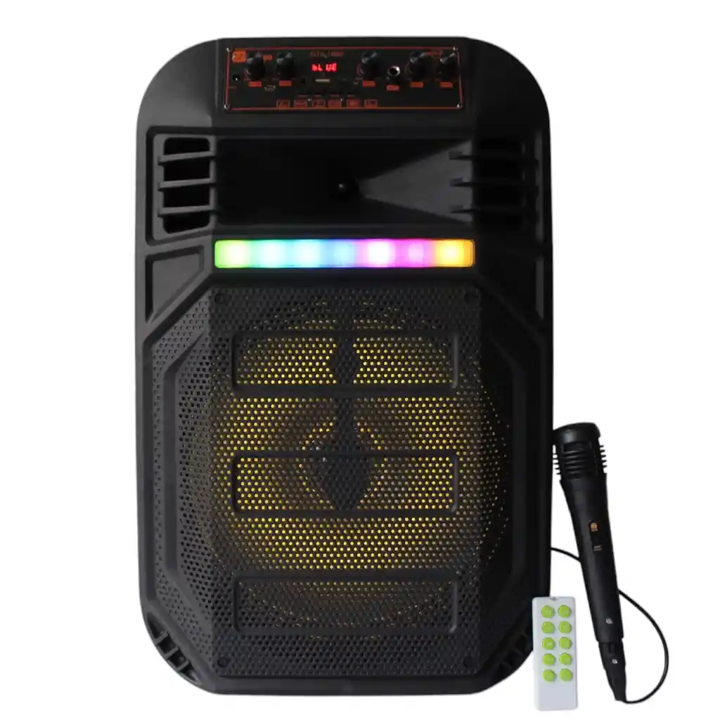 ¡Vive la mejor experiencia sonora en cualquier lugar! Este poderoso parlante portátil tipo maleta con ruedas y asa retráctil es perfecto para tus reuniones, fiestas y eventos. Disfruta de un sonido potente y claro, iluminación LED multicolor, conexión Bluetooth y micrófono con cable incluido para karaoke o animaciones. Su diseño resistente y recargable te permite llevarlo a donde quieras sin complicaciones. ¡Convierte cada momento en una fiesta inolvidable! DETALLES Potencia 25 W Sonido Potente con bajos profundos y alta fidelidad conexión Bluetooth Inalámbrica compatible con smartphones, tablets y más Incluye micrófono con Cable ideal para karaoke y presentaciones Luces LED Multicolor sincronizadas con el ritmo de la música Diseño Tipo Maleta con Ruedas y Asa Retráctil para transportarlo sin esfuerzo Panel de Control Superior con ecualizador y entradas USB, microSD y AUX Control Remoto Incluido para manejar la música a distancia Caja Fuerte y Resistente fabricada en plástico rígido de alta durabilidad Tamaño Ideal para Interior y Exterior, sin perder portabilidad Dimensiones Aproximadas: 50 ALTO X 30 ANCHO X 25 PROFUNDO *IMPORTANTE* El color del producto puede variar, según la disponibilidad en el momento* **INFORMACION IMPORTANTE **El color de la foto es referencial para que puedas ver los atributos del producto y al mismo tiempo es la opción 1 nuestra de despacho. Pero dejamos la aclaración para que lo tengas presente por si te llegara en otro color. ** NOTA : La foto de este producto ha sido ambientada, por lo cual no incluye ningún adorno, ni accesorios, ni piezas adicionales ni ningún otro elemento que lo acompañan. Observaciones De Garantía: 3 Meses**** La garantía de este producto es exclusivamente por defectos de fábrica, no por daños ocasionados por mal uso o por desconocimiento de uso del cliente. La garantía se tramitará bajo las políticas, términos y condiciones establecidos por la empresa. ****