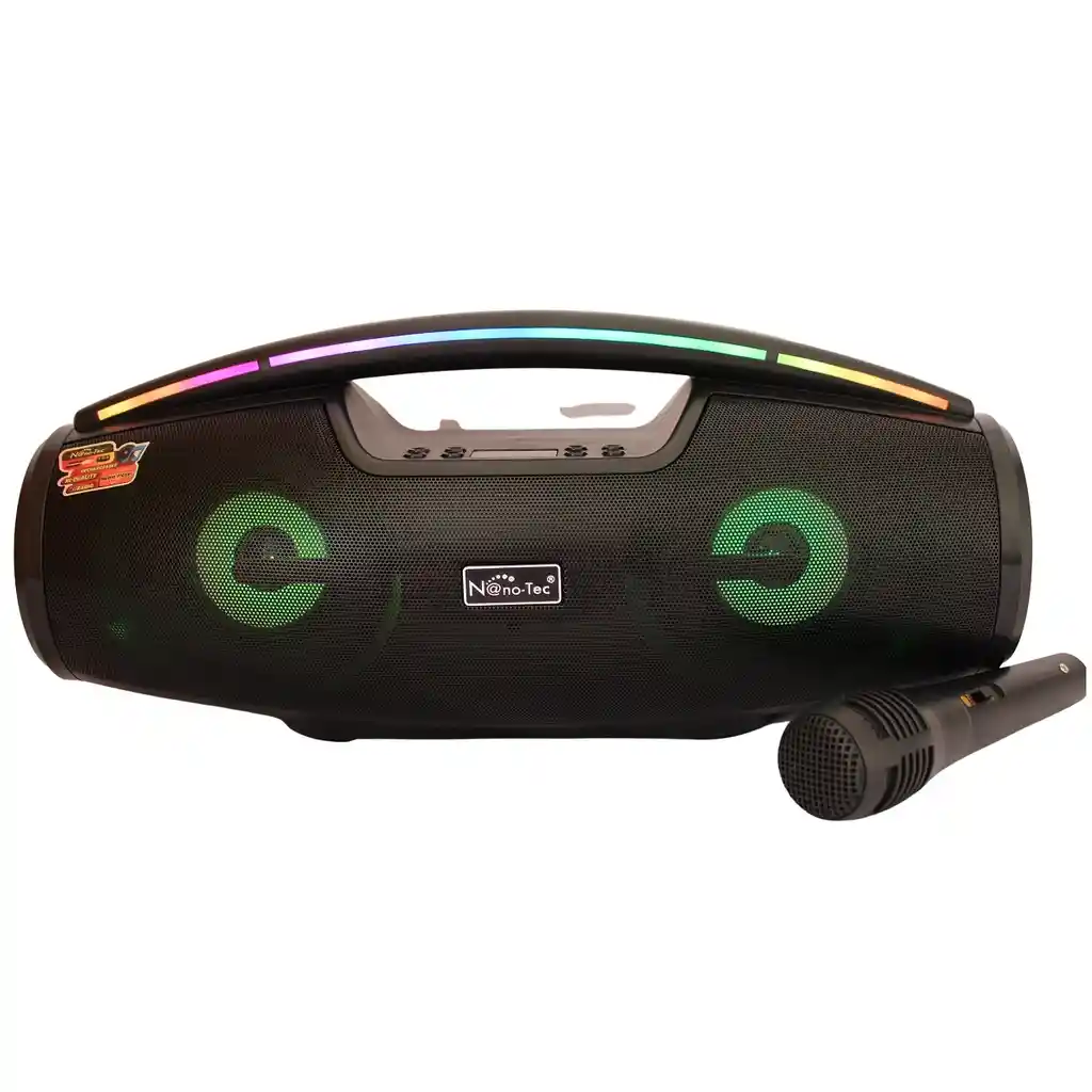 Espectacular oferta de sonido portátil, este hermoso parlante de sonido de alta fidelización, tiene la facilidad de reproducir por Bluetooth, USB, Micro SD Y FM Radio, con entrada Auxiliar, este hermoso parlante lo puedas transportar sin problemas, el parlante trae batería de Litio de alta duración para que puedas armar las fiestas donde quieras o para que puedas hacer KARAOKE o lo que se le pueda ocurrir en cualquier lugar. DETALLES Potente alto parlante con radio FM y reproductor MP3. Radio FM Reproduce USB y tarjeta TF Sonido potente y mejorado Bateria de Lithium de larga duración Trae luces tipo discoteca Entrada auxiliar Trae Microfono Conexión bluetooth Máxima potencia: 50 Watt Entrada DC: 5 V Medidas 17 cm de Alto x 38 cm de Ancho x 12 cm de Profundidad. Disponible en colores: Rojo - Negro - Azul