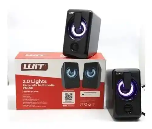 El Parlante Bocina Multimedia de Mesa para PC y Portátil WIT PM-90 es una opción moderna y funcional para quienes buscan mejorar la calidad de audio en sus dispositivos sin complicaciones. Este modelo destaca por su diseño compacto, luces LED integradas y fácil conectividad, siendo ideal para escritorios con espacio limitado. 🔊 Características principales Diseño compacto y elegante: Ideal para escritorios con espacio limitado. Conectividad USB y entrada auxiliar de 3.5 mm: Alimentación a través de puerto USB 2.0 y entrada de audio de 3.5 mm, compatible con PC, Mac y dispositivos móviles. Control de volumen integrado: Permite ajustar el sonido fácilmente desde el cable. Potencia de salida: 3W por canal (6W RMS en total), adecuado para uso personal o en espacios pequeños. Respuesta de frecuencia: 150 Hz a 20 kHz, ofreciendo un rango de sonido claro para música y videos. Impedancia: 4 ohmios, con una relación señal-ruido (SNR) de 88 dB. Distorsión: Menor al 0.1%, garantizando una reproducción de audio precisa. Luces LED integradas: Añaden un toque visual atractivo al entorno.