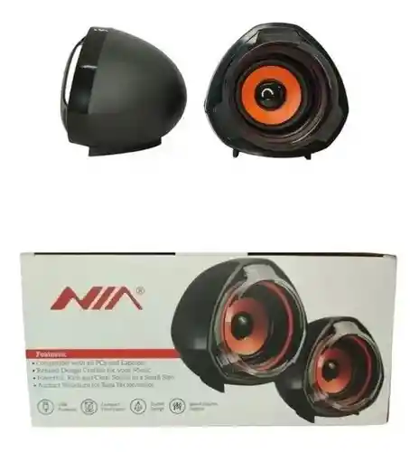 CARACTERÍSTICAS -Parlantes para computador NIA, en caja y garantizados. -Sonido nítido y sin distorsiones -Entrada de sonido jack 3.5mm -Alimentación vía cable USB. -Altavoces 2.5" *2 -fuente de alimentación CD5v USB. Garantía del vendedor: 30 Días por defecto de fabrica.