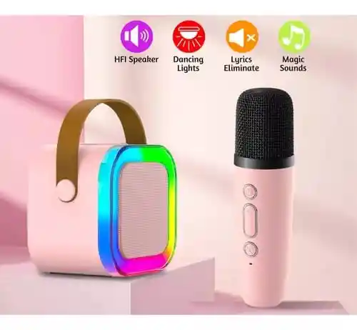 Mini máquina de karaoke para niños, altavoz Bluetooth súper lindo y ruidoso con micrófono inalámbrico, luces LED, para niñas de 3 a 12 años y adultos, juguetes para niños pequeños, color