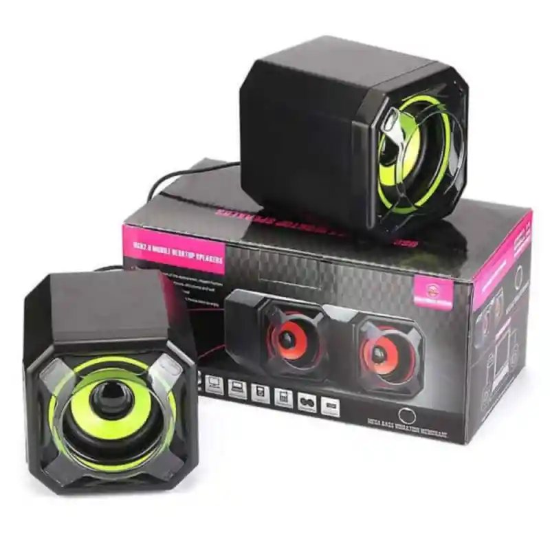 Parlante Escritorio A8 Pc Computador Portátil ¡Óptimo sonido multimedia en un diseño estilizado y compacto! Su reducido tamaño te permite colocarlo sobre el escritorio, siendo posible ajustar la intensidad del audio proveniente de tu computadora, tableta, teléfono inteligente o dispositivo de audio digital a través de la práctica perilla de volumen ubicada en el cable de poder. Los parlantes se conectan fácilmente al puerto USB de tu computadora, sin necesidad de utilizar un adaptador externo ni baterías adicionales para funcionar. Descripción: Modelo: A8 Material: ABS Entrada: 500mA Potencia efectiva: 5 W x 2 Voltaje de carga: DC5V Frecuencia: 90 Hz - 20 KHz Impedancia: 3 ohmios Unidad de altavoz: canal L / R x 2 Sensibilidad: 600 +/- 100mv Interfaz: 3,5 mm Alimentado por USB para portabilidad Potencia RMS total: 10 W (altavoz del 5 por ciento) Control del volumen Fuente de alimentación: USB de 5 V Color: Negro con Naranja o Con Verde Medidas: 11 X 7 X 9 X CM Respaldo y garantía en todos nuestros artículos ventas por mayor y al detal.
