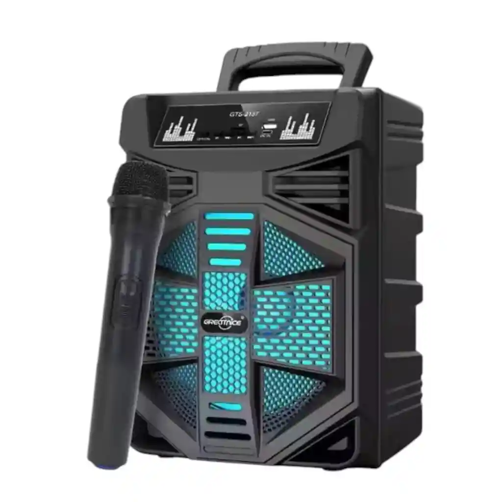Lleva el entretenimiento a otro nivel con este potente parlante portátil con conexión Bluetooth y luces LED integradas. Ideal para fiestas, reuniones o karaoke, ofrece un sonido claro y envolvente que ambienta cualquier espacio. Incluye micrófono inalámbrico para cantar, animar o hacer presentaciones sin cables ni complicaciones. Su diseño compacto con asa superior facilita el transporte, y su batería recargable. DETALLES Sonido Potente con graves profundos y excelente claridad. Conectividad Bluetooth para reproducir música desde celulares y tablets. Micrófono Inalámbrico Incluido, ideal para karaoke o eventos. Luces LED Integradas que crean un ambiente vibrante y dinámico. Entradas USB, Auxiliar y Tarjeta TF para mayor versatilidad. Diseño Portátil con Asa que facilita el transporte. Controles Integrados de volumen, reproducción y luces. Potencia: 10W Dimensiones aproximadas del producto: 30 alto x 22 ancho *IMPORTANTE* El color del producto puede variar, según la disponibilidad en el momento* **INFORMACION IMPORTANTE **El color de la foto es referencial para que puedas ver los atributos del producto y al mismo tiempo es la opción 1 nuestra de despacho. Pero dejamos la aclaración para que lo tengas presente por si te llegara en otro color. ** NOTA : La foto de este producto ha sido ambientada, por lo cual no incluye ningún adorno, ni accesorios, ni piezas adicionales ni ningún otro elemento que lo acompañan. Observaciones De Garantía: 1 Mes **** La garantía de este producto es exclusivamente por defectos de fábrica, no por daños ocasionados por mal uso o por desconocimiento de uso del cliente. La garantía se tramitará bajo las políticas, términos y condiciones establecidos por la empresa. ****