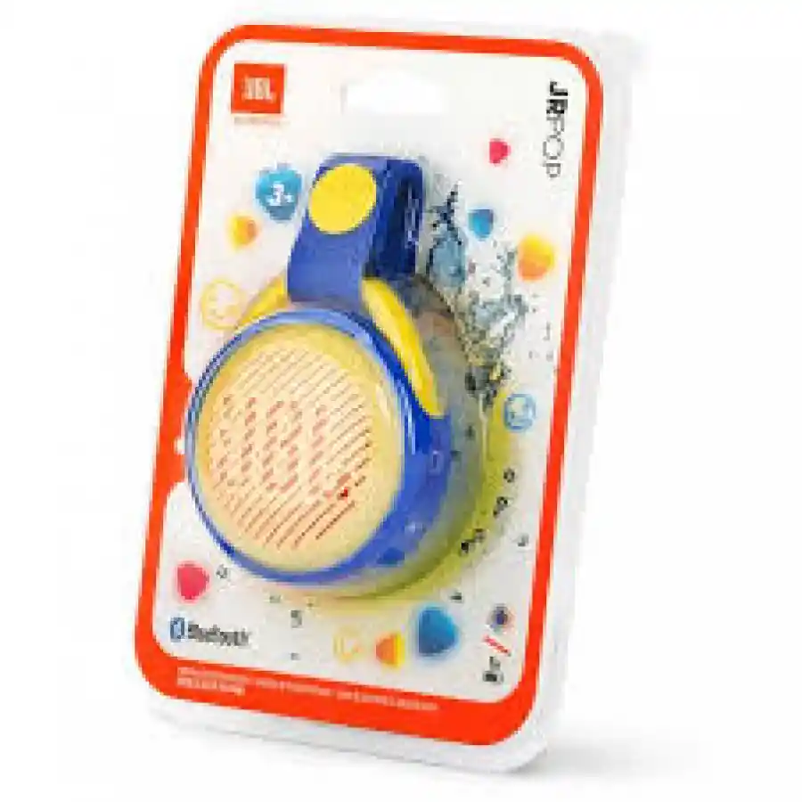 PARLANTE JBL JR POP BLUETOOTH. La batería recargable integrada ofrece un tiempo de reproducción de hasta 5 horas. Resistente al agua conforme a la norma IPX7. Los niños, como las grandes estrellas, pueden disfrutar del altavoz JR POP de JBL con Bluetooth. Los padres no necesitan preocuparse, porque está fabricado con materiales muy resistentes y es impermeable. Con batería recargable, para que puedan disfrutar de hasta 5 horas de reproducción. Los divertidos juegos de luces integrados harán las delicias de los más jóvenes aficionados a la música. Totalmente portátil gracias a la correa pensada para manos pequeñas. Además, el JR POP de JBL ofrece el mejor sonido JBL de siempre y es lo bastante resistente para sobrevivir a todos los juegos.