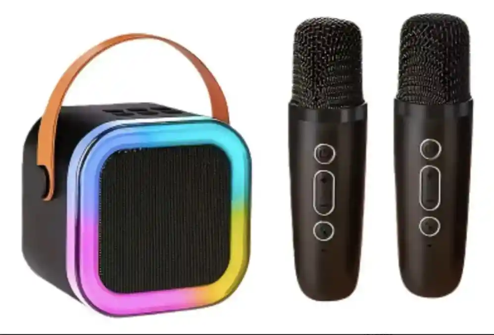 Parlante Karaoke Bluetooth Portátil Con 2 Micrófonos Y Luces