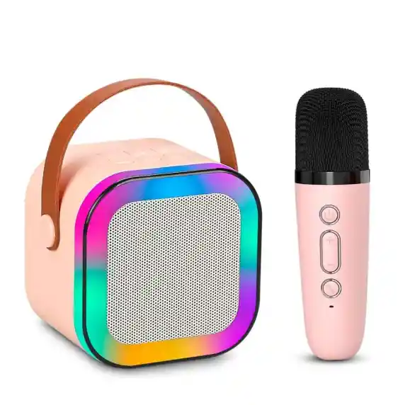 Voltaje: 5V Tipo de parlante: karaoke. Con conectividad bluetooth. Tiene luces led. Función de karaoke incorporada. Distintos efectos de voz. Batería recargable. Potencia de 5W. Viene con un micrófono de accesorio. Cuenta con micrófono interno. Ideal para escuchar tu música preferida. La duración de la batería depende del uso que se le de al producto. Tiempo de carga de la batería: 2h.