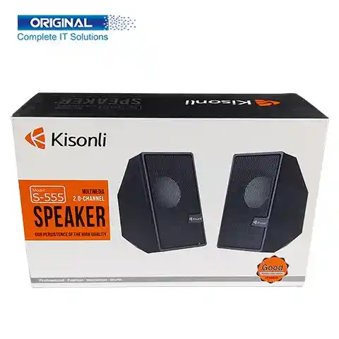 General Information Model Kisonli S-555 Brand Kisonli Type USB Speaker Technical Information Speaker System USB 2.0 Impedance 4Q Signal to Noise Ratio 58dB Frequency Response 20Hz-20KHz Distortion 80Hz-20KHz 1% Power Information Rated Power 3Wx2 Maximum Power 3.5W Physical Information Dimension 6.3x6.3x10.5cm Weight 0.47kg